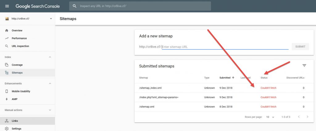But on mycr8ive.cf blog site it will not upload and the status is “Couldn’tfetch”. I have checked it on the old Search Console (where you can do tests) and the Sitemap.xml’s results are no errors after doing the test. But the New Search console (and Bing) wont accept them.