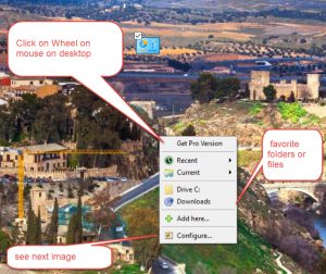 Direct folders is a wonderful free app . It uses the scroll bar on your mouse as a button. If you press the scroll bar down when you are on the desktop it will have a pop-up with a list of your favorite locations, folders/files that you’d go to.
