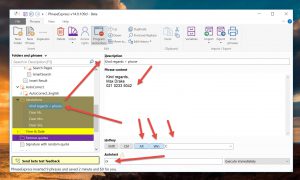 It looks like it has a rich interface and also I’m just working my way through an example of different Salutations for emails. I sometimes like a simple one, other times I like to add my Phone number, other times I like to add my qualifications and hotlinks to my websites. I find the automatic signature a bit of a nuisance as it sometimes puts the full one in on a simple social email (an even bigger nuisance when there are several steps in the conversation and its been back and forth a few times), so having a quick method, typing a couple of odd letters in at the end of an email, may be the way to go, I can choose what is appropriate.