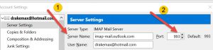 I initially used the setting for the server and port number from my Thunderbird Hotmail account: