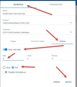So I now have an automated Robot that will send me an email each day, for the next 3 days, at 10am from one email account to another. After that I have set it to stop the process.