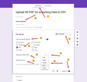 I’m thinking of an example where a user wanting to have data extracted from a 3D PDF file to a CSV, then maybe on to further processing. They would fill out a .CSV file somewhere online and load up the 3d pdf file that they want processed (or multiple files) and also put an email address for where the Robot can send a notification to if its completed. Google sheets or Forms would be good for this with a general account used for this. In fact, you could have the Robot check to see if there are any new lines added at say minute intervals, and if there were, then to action them using a flowchart with a yes/no for new lines added. You’d need to setup the automated Robot based on your VPS so that it is running all the time.
