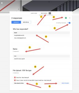 In image below, item 2 shows that the responses information is saved to a google sheet