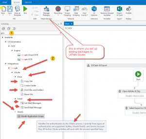 The pdf setup seems to be for an older version of UiPath Studio, so buttons are in different places. I used the manual download process as the studio link to Go! didn’t show any packages.