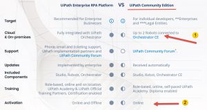 So if you want to build Robots you need to activate them from your PC. I note, on the image above bottom line that it says activation only online for Community Edition. I have tested bots which I saved to local drive, unplugged from Internet & have run the bots so these do run off-line.