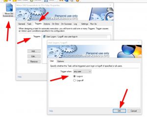 I thought I’d test that with my Screenshots. GreenShot is my go to App at the moment, and I’ve created a specific directory “Screenshots” where it will save the files to. I’ve also made a 2nd folder “Screenshots 1 day old”. At the start of the day, when I’m logging into my PC, its to take files from the first folder and put them in the 2nd. At the end of the day, on logoff, its to delete the files in the 2nd folder. I’m not sure if this is the perfect workflow, but its a start. Update 24th Jan- It works very well, at the moment I have emails advising me of the actions, I’ll turn the emails off now I know its working)