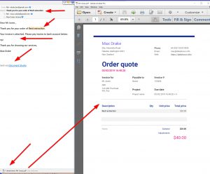 The email was sent to orderer with Invoice Attachment and I can’t see an email sent to supplier (I’d need to check I’d set that up correctly) and a new sub-directory was created for the order under the name of the orderer, Mr Jones. In fact, 2 sub-directories were created. I also got about 2-4 emails (I may need to check this again) as I have been playing with adding other accounts to one of my gmail accounts (so I have 2 inboxes in Thunderbird for the same account). Anyway, the process worked as shown in video.