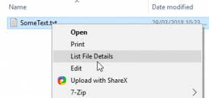 Basic tutorial here. If you select a text file, right click on file and new choice “List File Details” added, if selected then it runs the code. Code in the example: