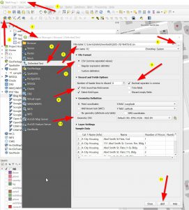 I saw a pre- V3 QGis video on uploading from a Spreadsheet here, where the presented created a .CSV and a .CSVT file (this managed file column types as it imported all columns in as type “strings” so coulddn’t read the Lat/Long columns as it saw it as text, not numbers.