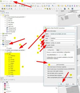 Selecting PostGIS you can select a Postgres DB with a GIS addin. (I’d done this previously and will have to refer back to my OpenMaint posts to see how I added this in). The actual tables highlighted in yellow are GIS tables but are all empty.