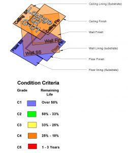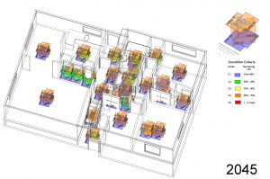 I then took the survey data and extrapolated it out for year on year as per the heatmap post, Excel filterable Heatmaps for Asset Condition over time online. From the extrapolated data I could map it to Revit Room Schedule which I exported and imported into Revit with the updated Yearly condition using the Rushforth plugin excel import/export tool. After updating the Revit model with each years condition I took a screenshot with Greenshot in the “capture last region” so that all the images aligned.