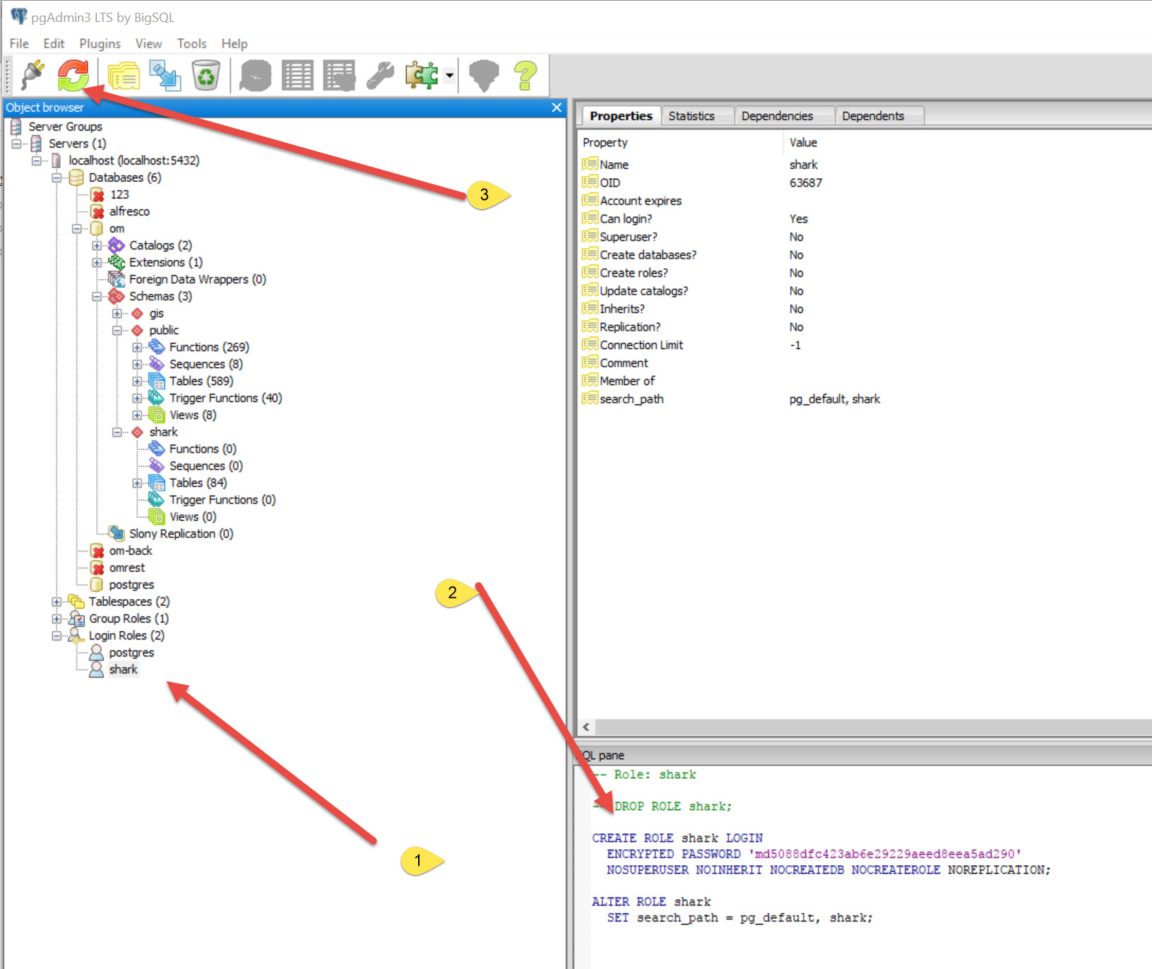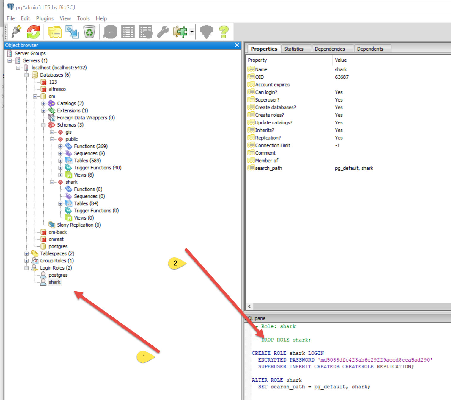 ALTER ROLE shark LOGIN