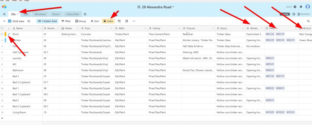 When I started to look at it I thought I’d try and use it as an asset management tool for my property. So set up a table with all of the spaces and started to fill in all the room data information on walls, floor, ceiling, doors, windows before I realised that I could make a window table and link it to the main Room table.