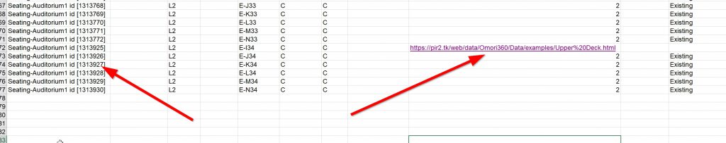 I think, like the Burnham camp map or the Elemental Housing Map, both of which have a database to store the information, you’d use a similar approach for storing all the links to your image/panorama files, as there will be lots of them, in the example above there are 2275 seats, so a big table.