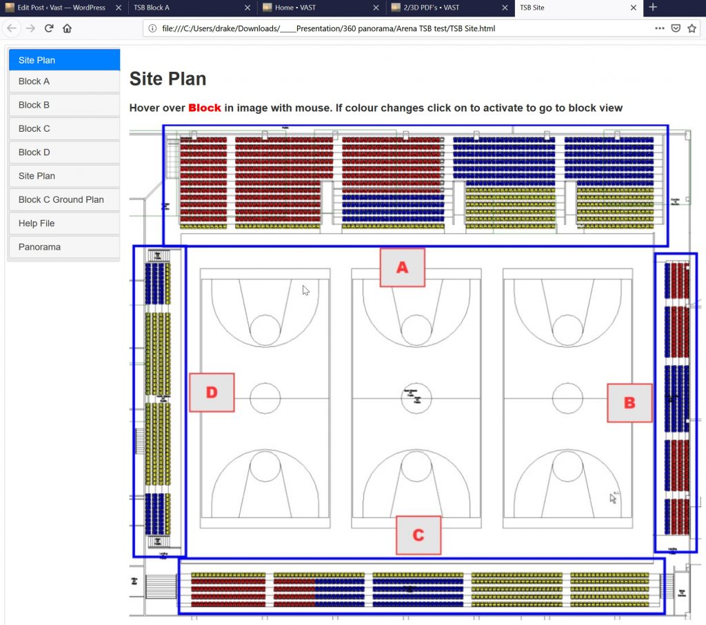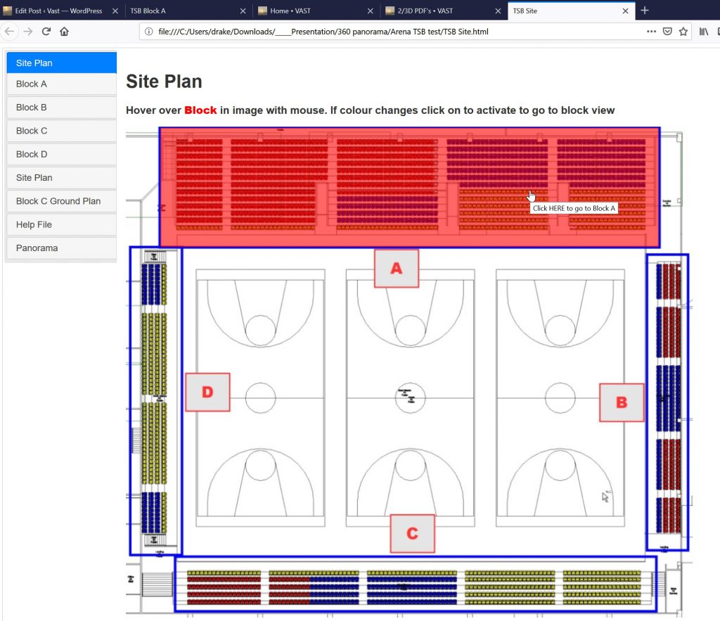 I tried using href=”#tabs-2″ in the hotlinks, this is an html ANCHOR link that jumps to another part of the page, in the case I wanted to use it was to go from the site plan to the Zone A image. But internal ANCHOR references jump to the next area in the code, BUT DO NOT REFRESH THE PAGE, so the original site image stayed active, you can force it to refresh , see this Stack Overflow article. It does refresh, but only once, so in the end, I made a new page up for the different zones, that made sure that the page would refresh. Unfortunately, there were also JQuery Tabs, these are the Page links in the top right hand corner, and it will automatically go to the top one, so I had to re-order the tabs for each specific zone that you are viewing (ie each a new page with that zone as the top list item).