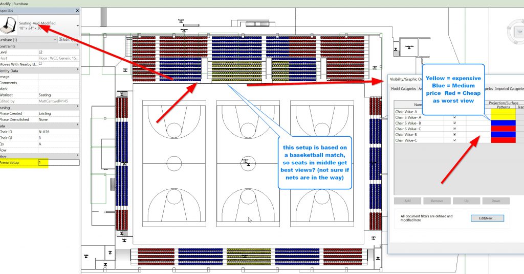I had an idea for multi-function halls, that the seat costs would vary based on the arrangement. So if you were watching a basketball match, the seat would be of a different value if it was used in a concert where the stage was at one end. So I used the TSB Arena as an example where you could colour the seats differently based on what event was on.