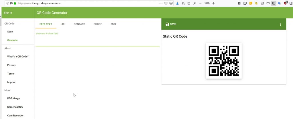 QR Code Generator. This free website goqr.me is a great one for setting up personal data stuff like your wifi password and vCard. Static QR codes generally (unless you are using a website).