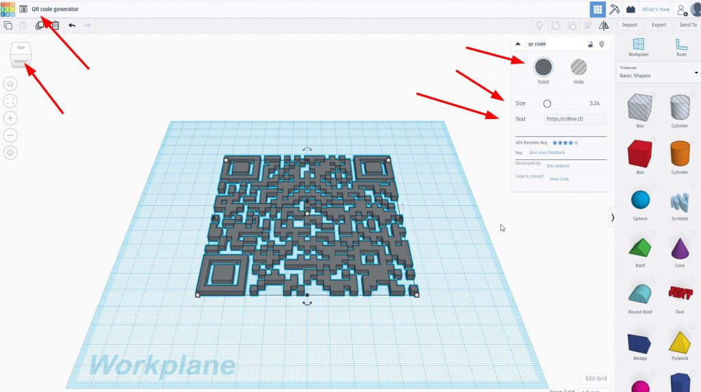 Anyway, on with my hunt for a 3D QR code process. I came across this video that uses Tinkercad, a free online tool: