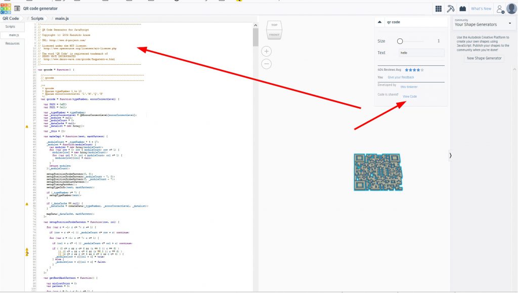 The nice thing about the gallery is you can copy the object and open in your own file, also , Navad Dadon also has made the JavaScript code available. I tested the QR code out using my blogsite and it scanned easily (when in top VIEW).