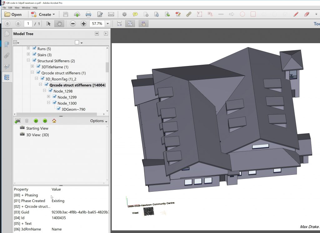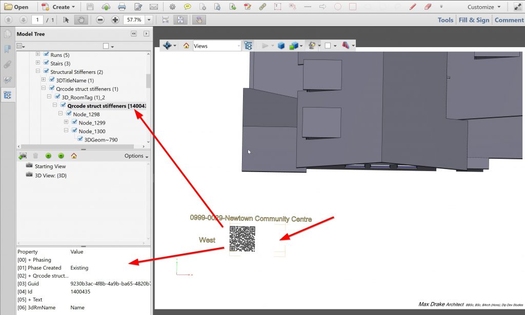 As I always create floor plans in my 3D PDF’s the QR codes are easy to scan. This allows for someone to have a hard copy of a 3D PDF floor plan and they are able to access other information about the building.