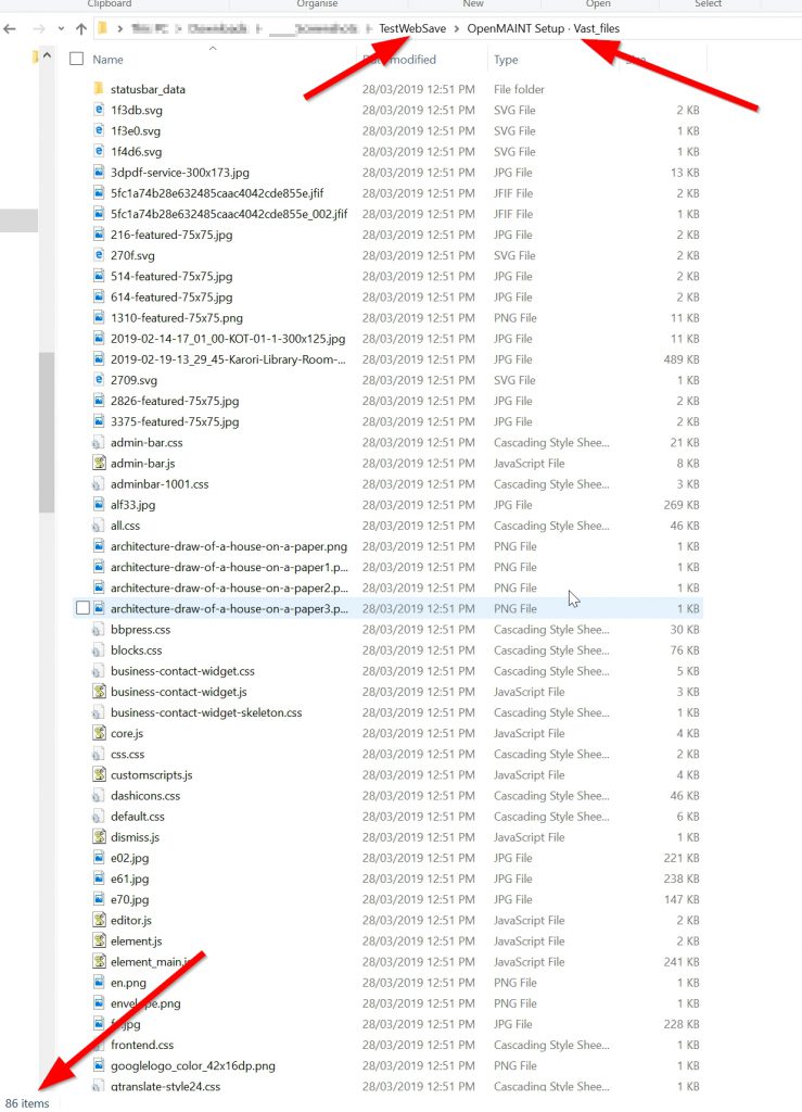 The top directory has the web page file but it also creates a sub directory with a lot more files. For that one web page there are 86 files in the sub directory