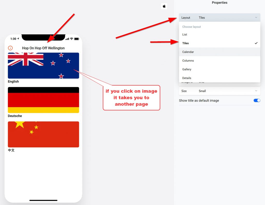 Also at the first attempt, on the front page, when it set up, would only show a list of items rather than a variety of items. This led to having an image of a flag that you clicked on for a language and it took you to a sub-page, and there you could click a button to go to the specific language site. Not elegant.