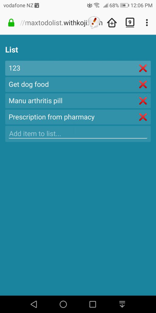 I used the above list template and copied it to use. I changed text names and background colour and deployed it. Supposedly it was using a remote database to store the data, but every time I opened the app the previous data had disappeared, so for me it didn’t work very well. I thought it had saved the data, but the next time I went into the app it showed blank. Interestingly if you started to add an item to the list the previous items appeared. Unfortunately you couldn’t edit previous items, so very limited. But as an example of deployment, it was interesting.