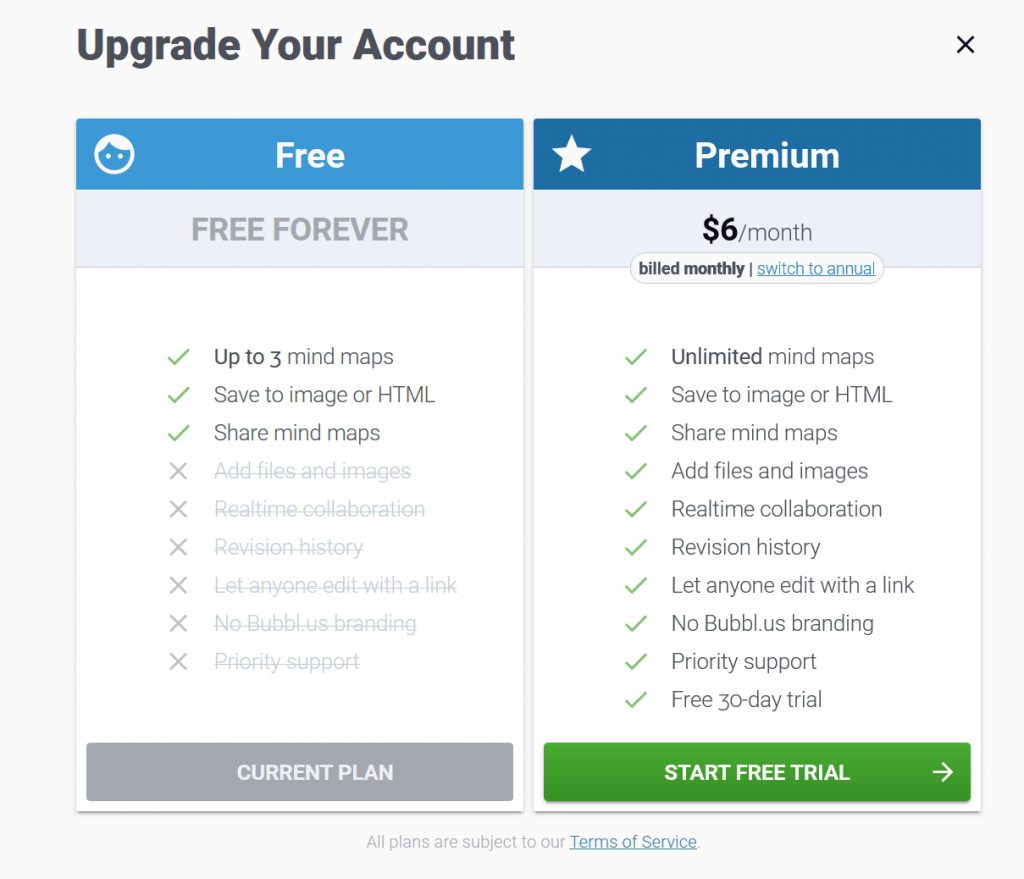 Free account for Bubbl.us mind mapping