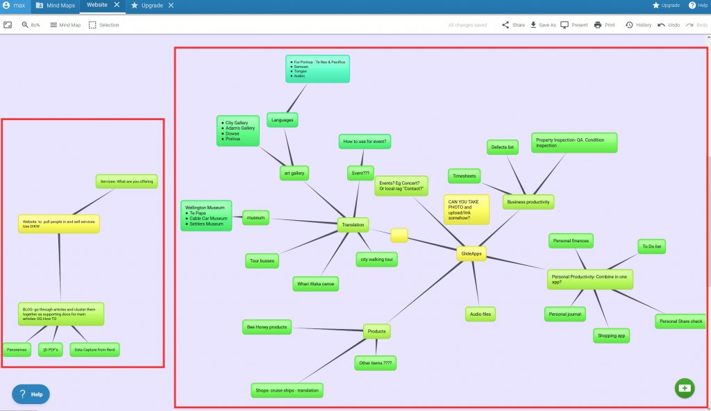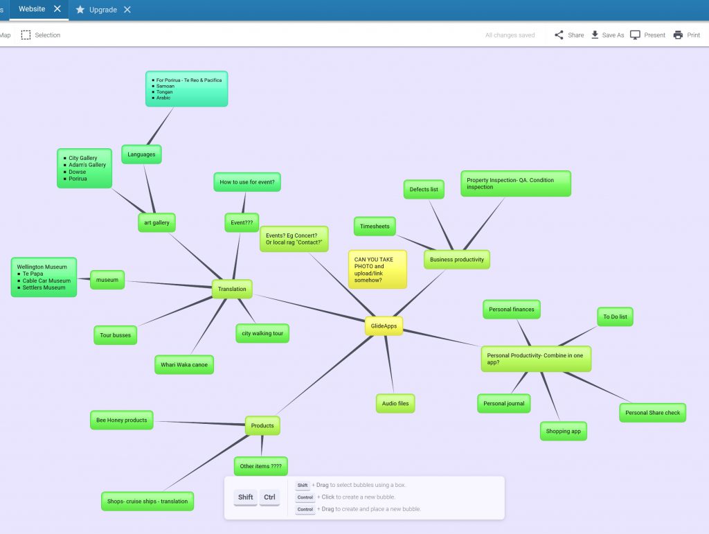 So I started to look at things I’ve done and what else I can do with this app, so instead of looking at my website for mind- mapping, I’m doing one for the GlideApp
