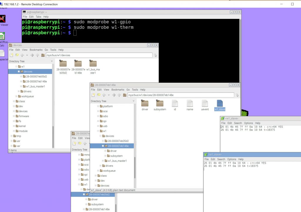 That took a lot of breakages to get a couple of temperature sensors working. I can only get their output by interrogating the file, so it is a live temp. It is not saving any data anywhere at this point.