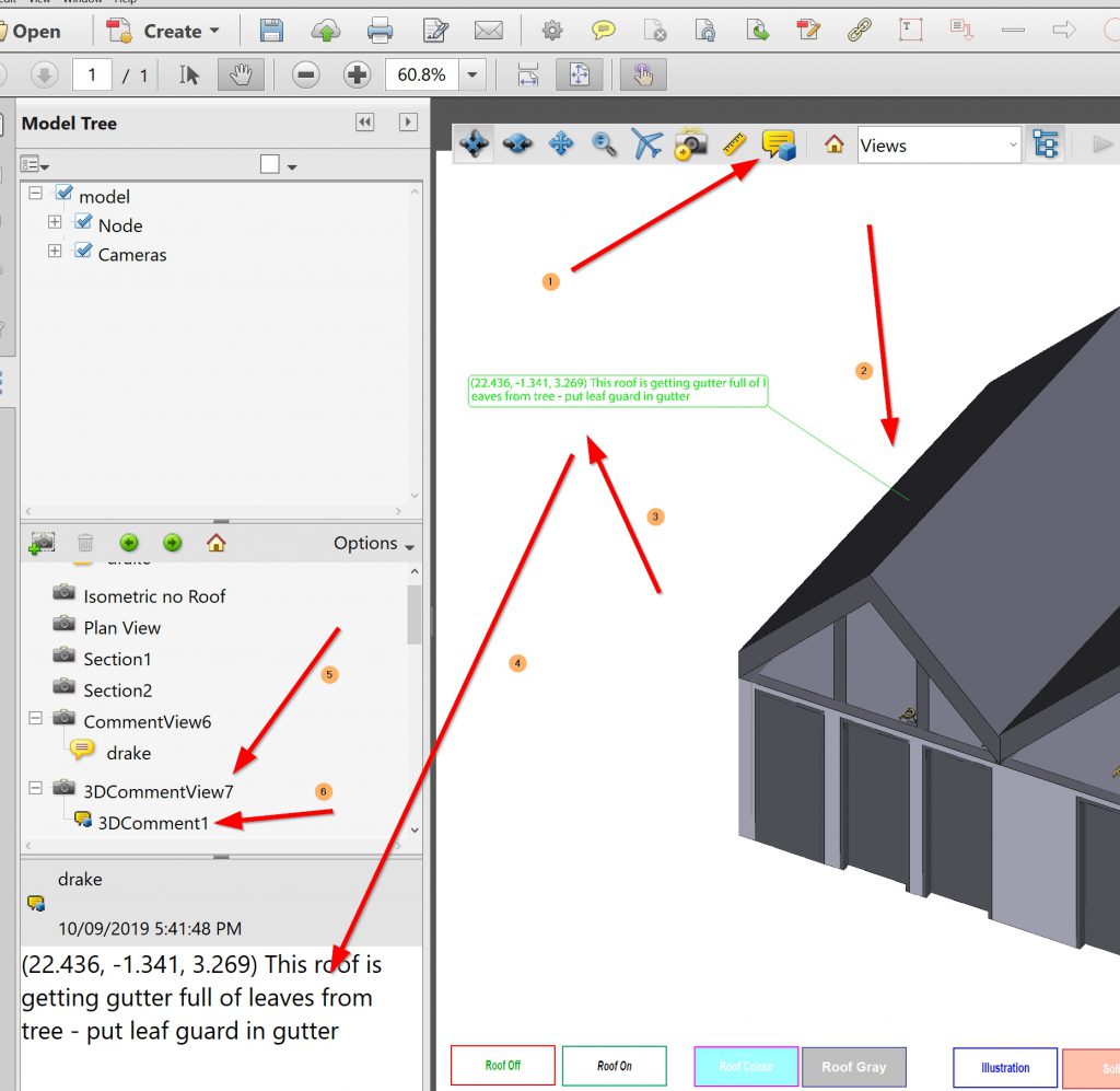 The Comments can be saved to the PDF, so as long as the file is given to others, they can read those comments. These modified files can be kept for future updating for the next creation of a 3D PDF of the building.