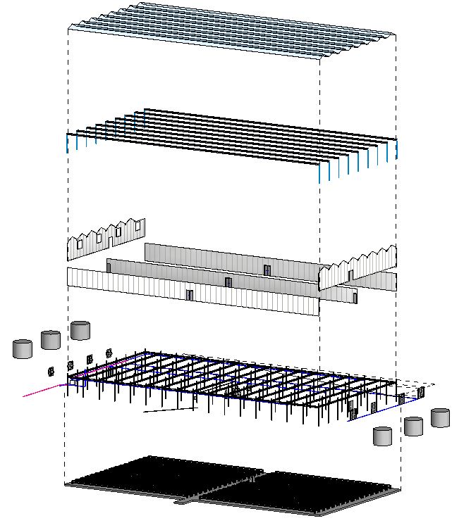 I do like the ideas of these, its like having a toy house and lifting the roof off and looking inside. You can displace elements and/or categories in Revit away from their original location so 1/ You can look inside/behind that element to show what is behind it & 2/ You can show that that element is necessary for the complete composition of the building.