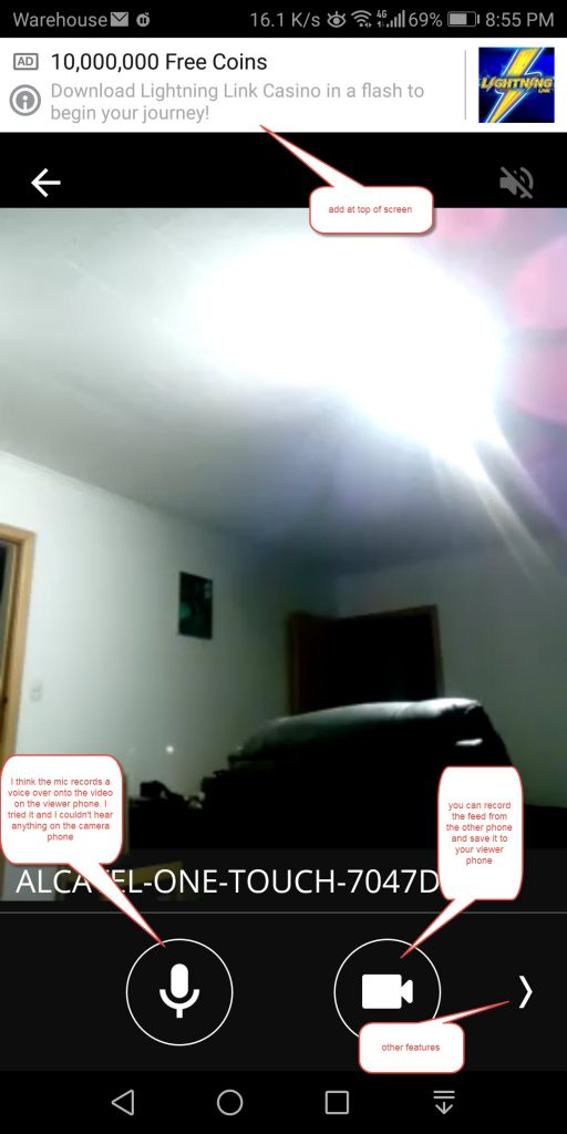 On the other phone you can also get the video, and you can record it on that phone directly. As you can see the adds at the top of the screen. You have the option of recording over the video that you can save to the viewer phone