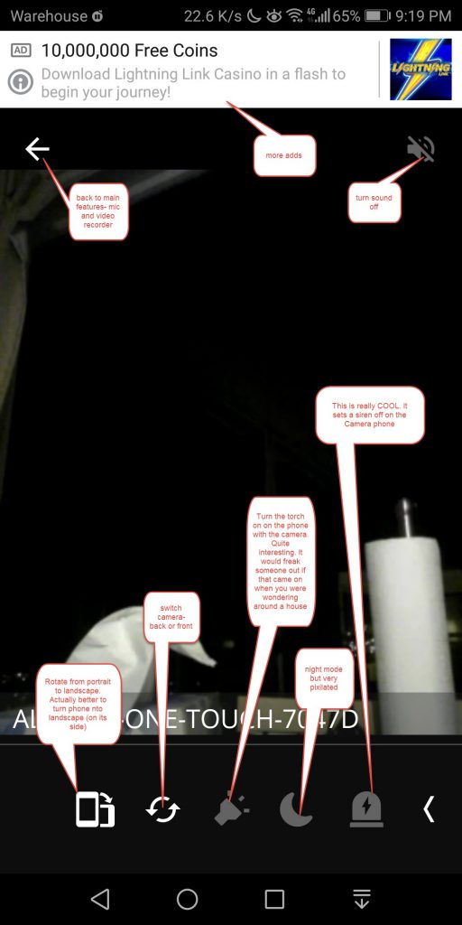 On the pc you can browse to http://alfred.computer and that will take you to a gmail login. The screenshot below shows the camera from the phone. There is also sound, but the mic gets a lot of gain so very screechy, you can turn that off.