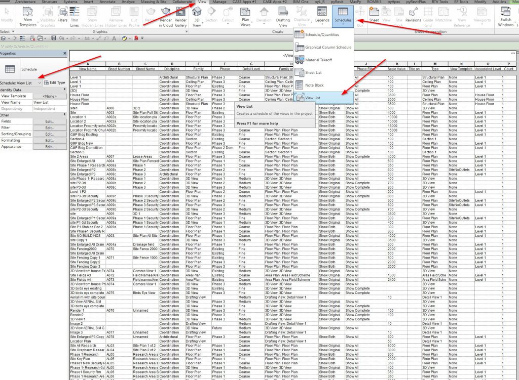 26 USE VIEW LIST SCHEDULE TO CHECK VIEW SETTING. I never even knew this existed, but a useful tool to give a heads up of all the views in the model, I’ll definitely be using this now I’m aware of it