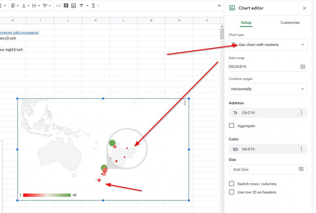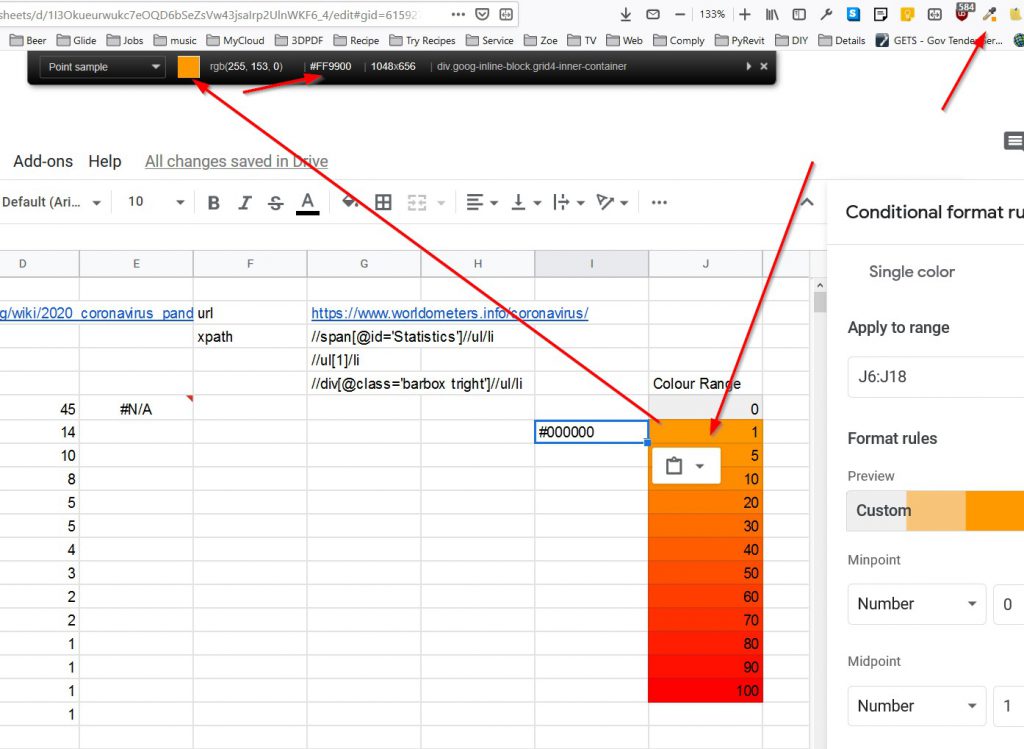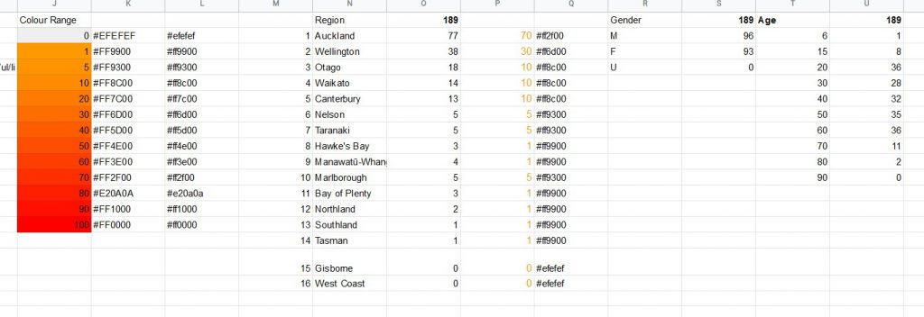 So far, I’ve pulled the regional data into Sheets. The next is to have a colour range base on numbers , and a lookup to get the colour code.