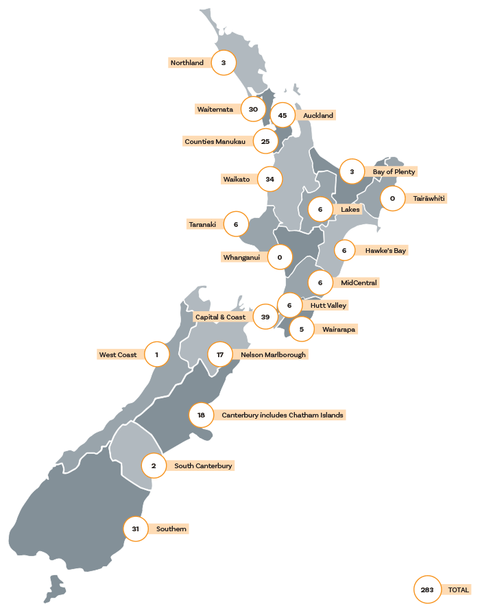 The chart is OK, but pretty basic.I can’t colour background, and the no-data columns do not show up at all (eg West Coast Region). But it does have the hover element where you can put extra data. The legend is rather general. To compensate I’m also doing a Table below so you can view the information. It is embedded in the map but people need to zoom in and hover.