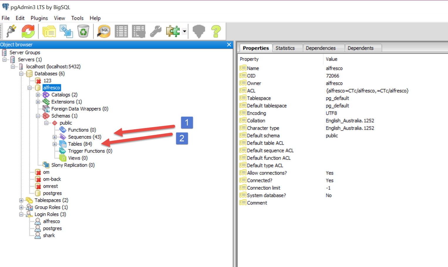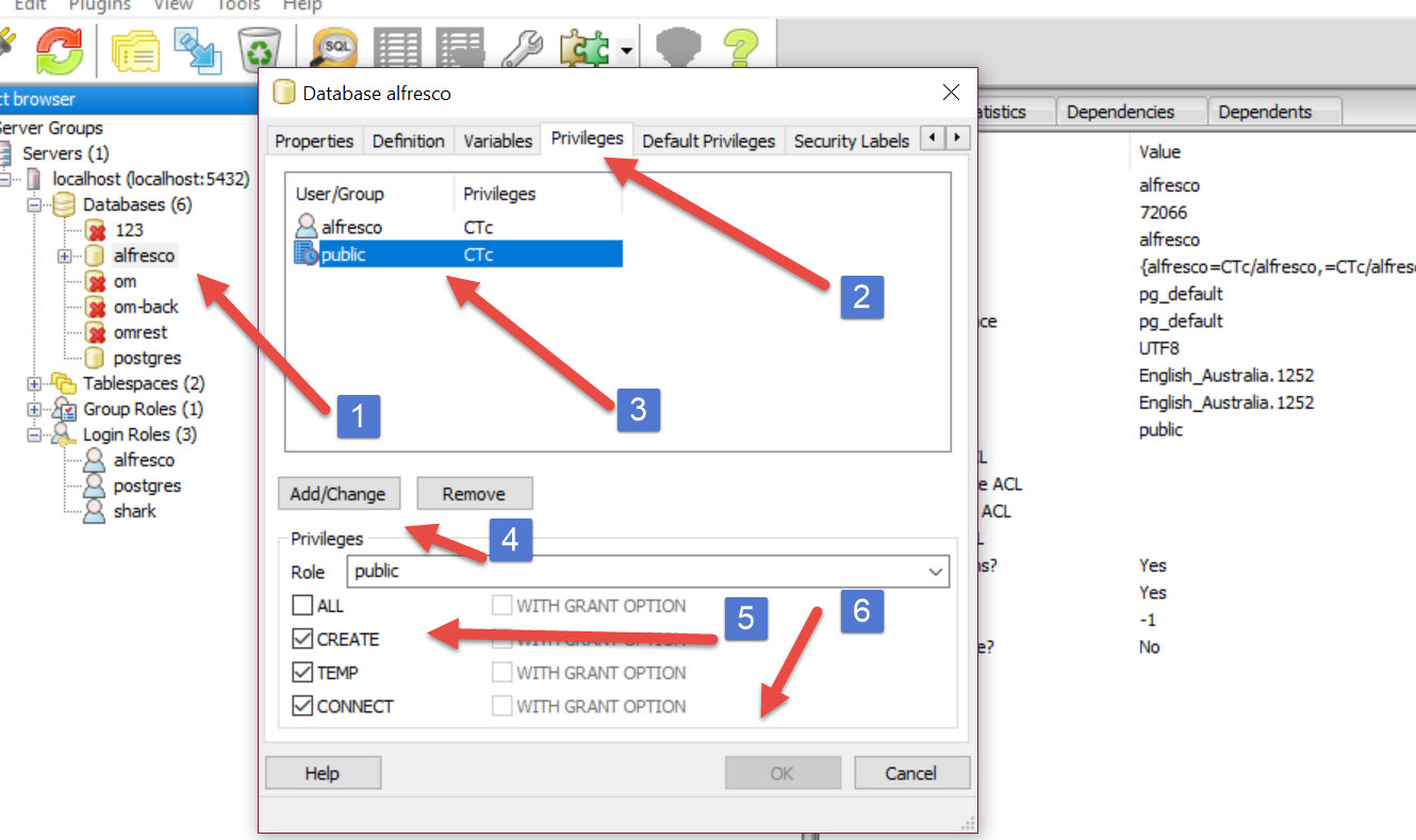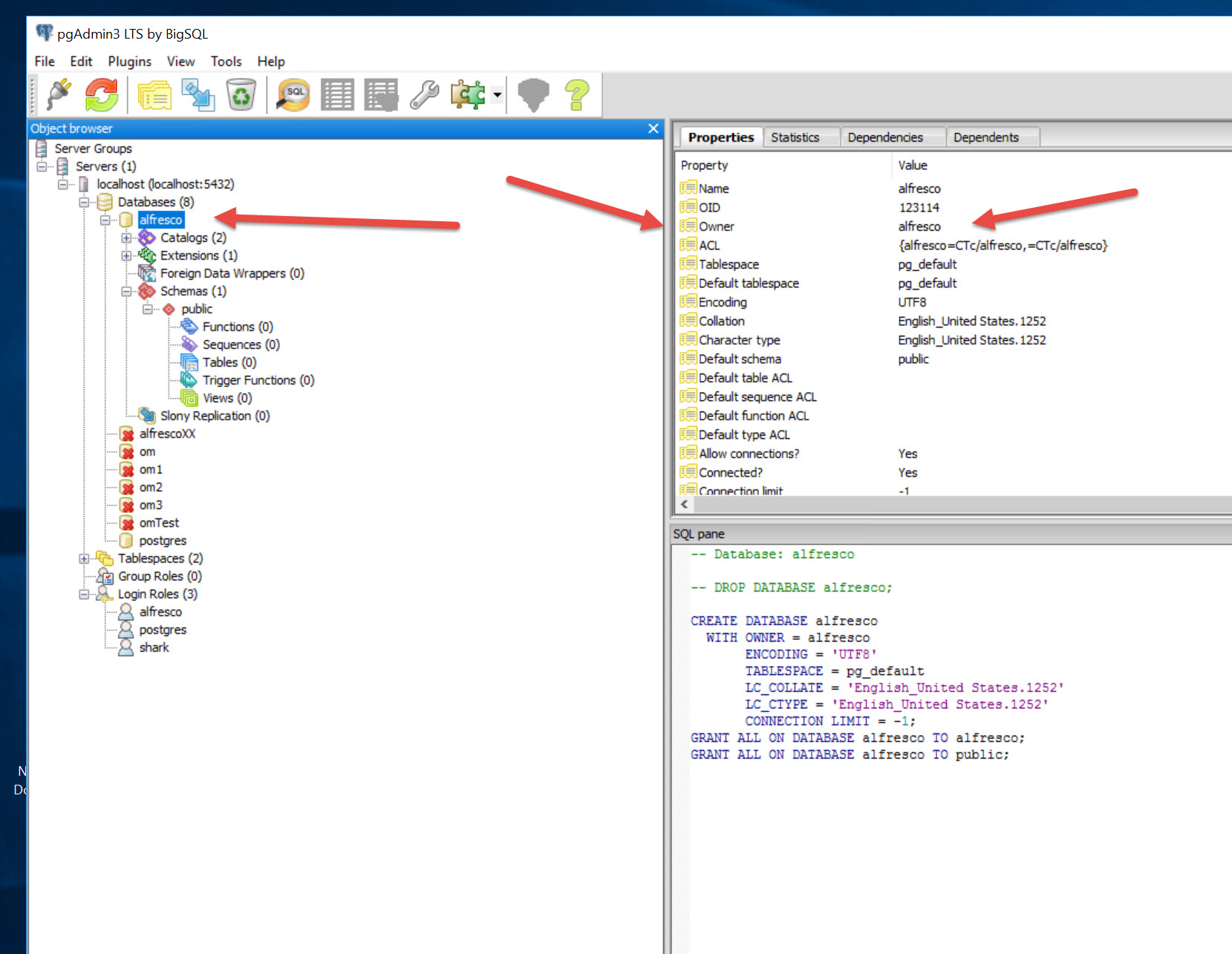 Make the Owner of alfresco database alfresco (role)