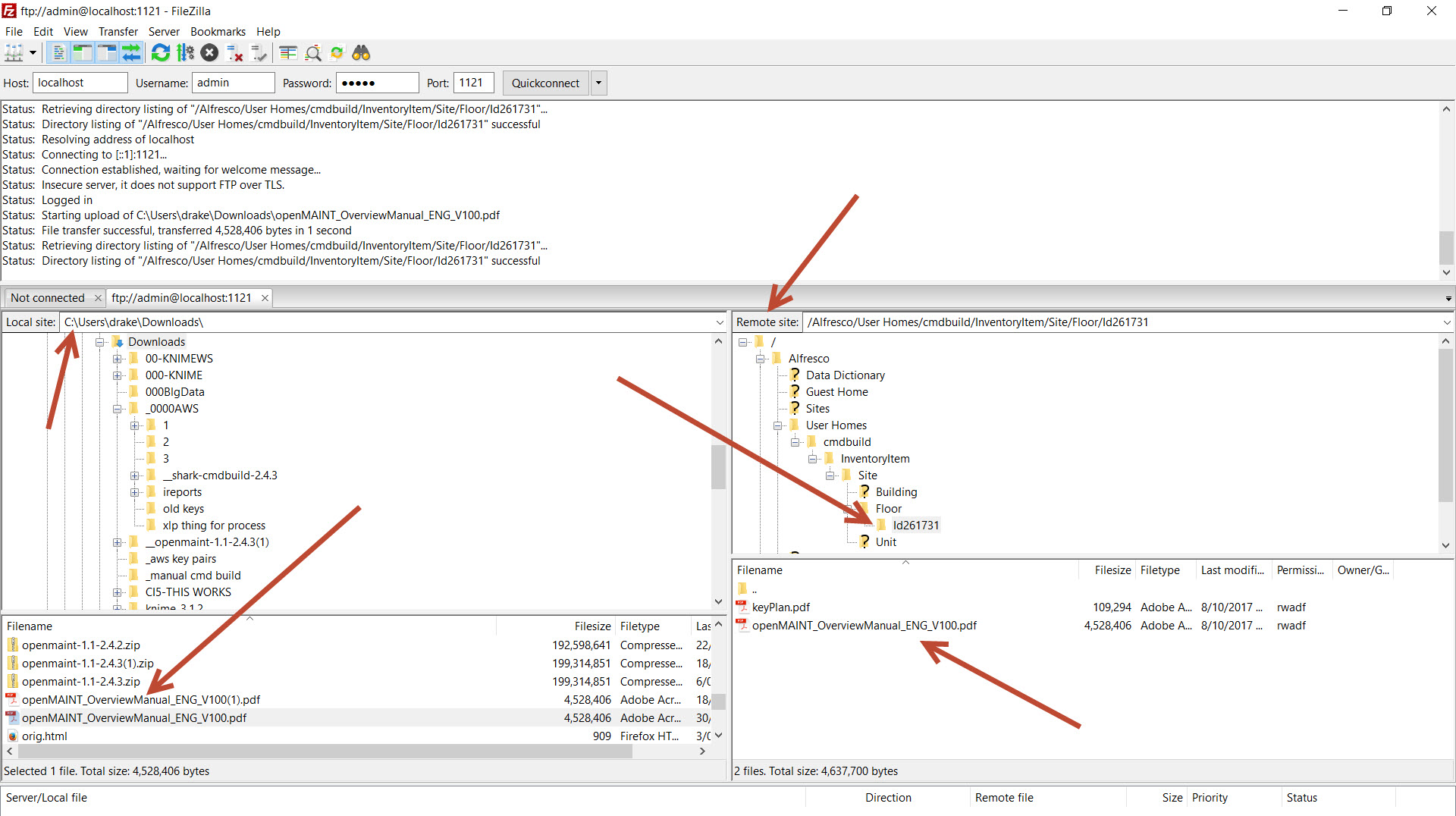 A test. Using Filezilla to upload files to Alfresco and push into openMAINT