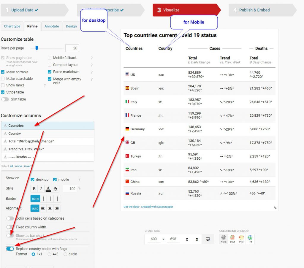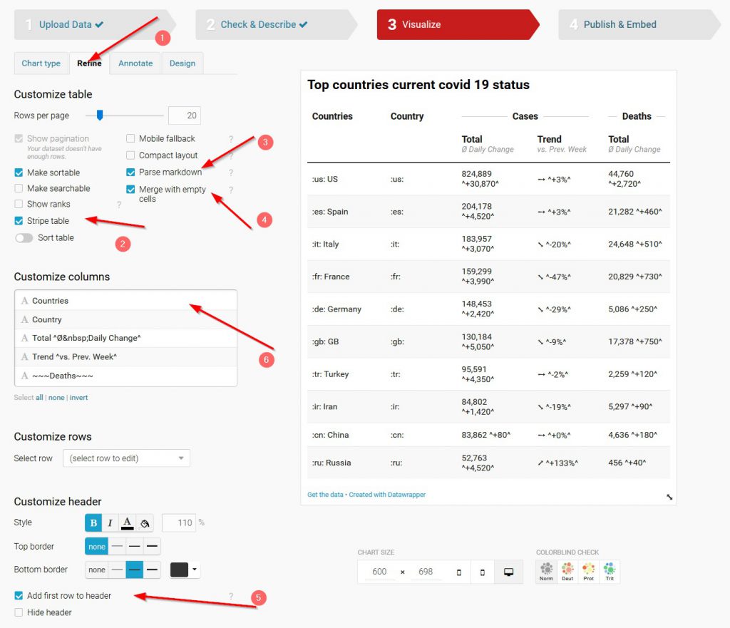 This is something I found hard to navigate through in DataWrapper, there are some good settings but you need to know where they are and what they do. I suppose some familiarity with the programme would be good. I think I looked on Mr YouTube and din’t find anything too obvious to help.