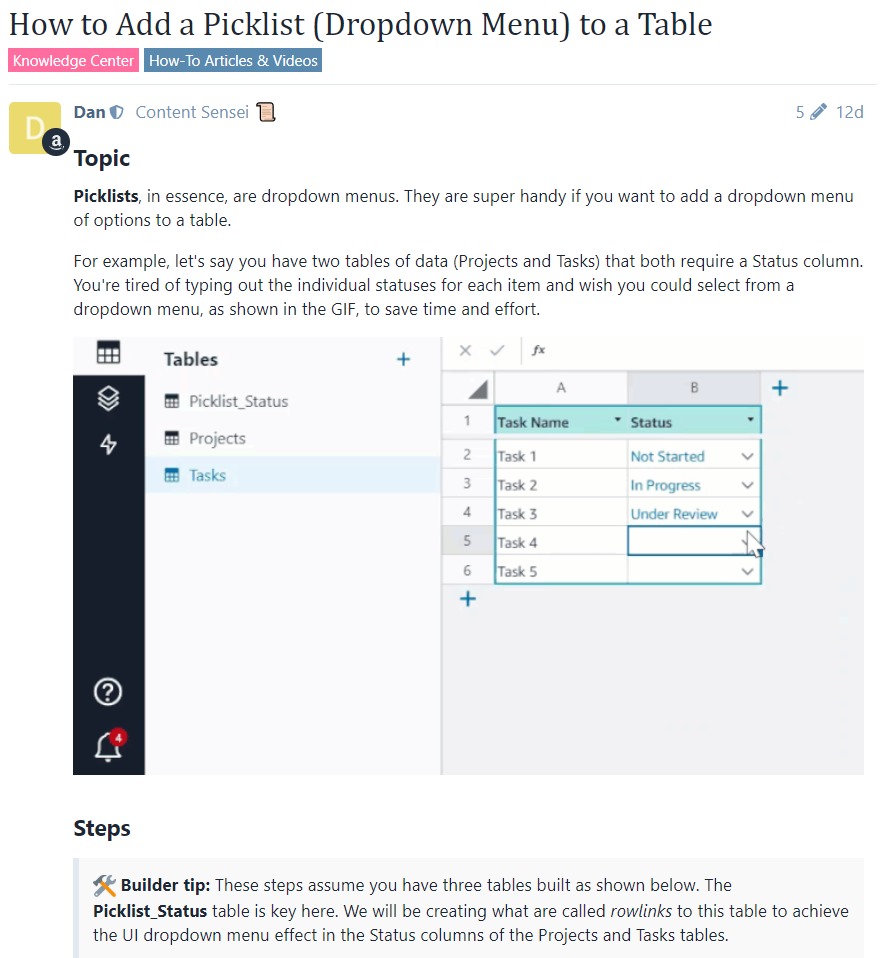I thought I could drive the app from the Table, but that doesn’t seem to be the case. Maybe when I’m a bit more familiar with it I may be able to. I did spend an awful lot of time formatting columns and that seemed to disappear when you went back and re-looked at the Table column formatting. And it didn’t seem to propogate down the rows as they were created either.