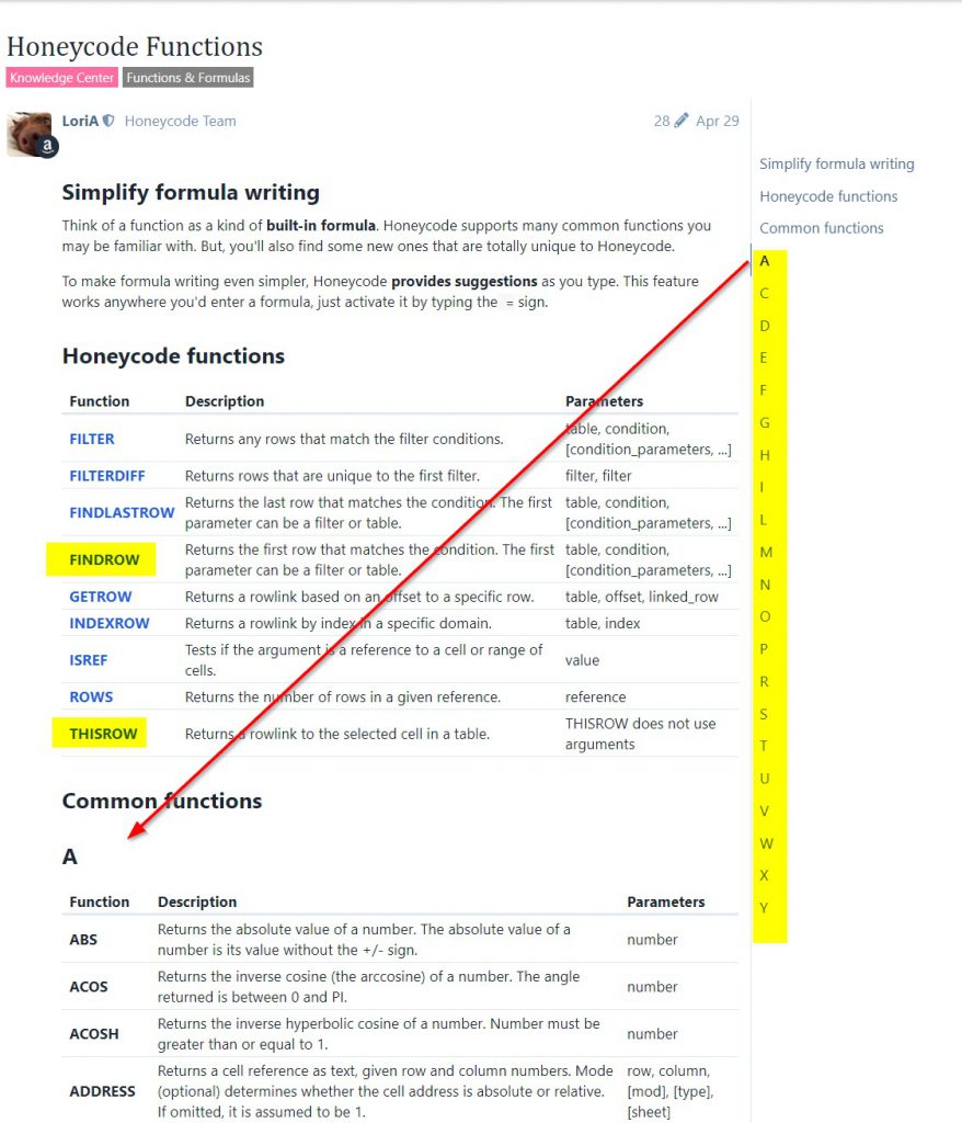 This article has a list of functions, there are some that are unique to honeycode and a list, alphabetically, of other ones they use. I’d been looking for that resource earlier, so nice to find it.