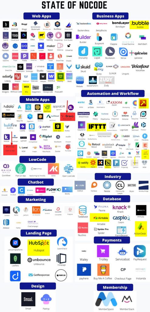I’ve highlighted ones that I’ve looked at or use and also in red are 2 of interest in the mobile area that I want to explore more thoroughly, OpenAsApp (make app from previous data, may be limited but quick and easy to share and free plan looks reasonable) and Bravo which works as native app, but a bit of building work goes into setting it up (also not too sure of how much the free plan gives you).