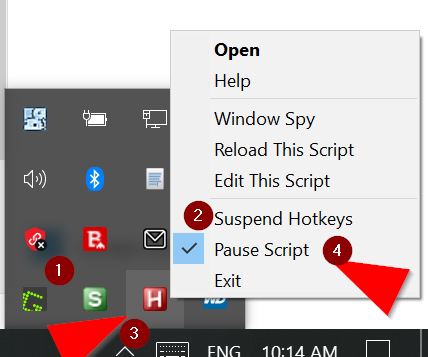 This is particularly handy if you have a buggy script and you’ve utilsed a key , say Shift +R so that Capital R does not work in a Text doc, you can suspend hotkeys in different scripts to identify where the bug is originating from.