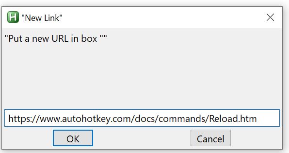InputBox, UrlLink, "New Link", "Put a new URL in box ""