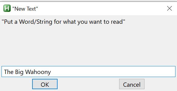 InputBox, Texty, "New Text", "Put a Word/String for what you want to read"