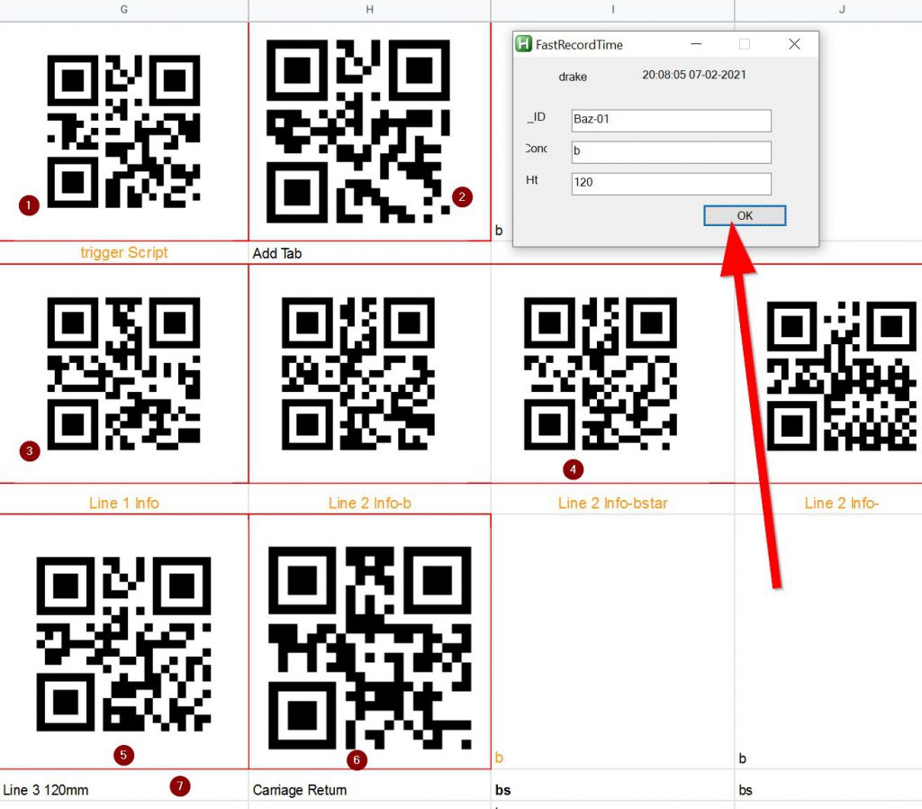 The cursor is now in the first field, I would like a confirmation that something has been scanned in, I found the gLabel code (see video below)solves this, after the v(Variable) Tag , allows a subroutine to run, so it aknowleges that data has gone into the variable (Plant ID) so I make a different frequency sound (or maybe 2 short beeps( a different noticeable sound from startup sound). The gLabel also allows you to retrieve the variable straight away (not wait until you push the button at the end).