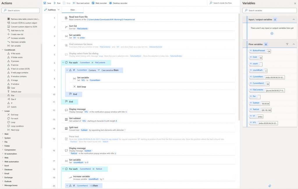 To get to the point where I’ve set a variable, looked through a list and found the item quantity has taken me 3 mornings (an hour at least) to do, and it is so so tedious. I think I’m more annoyed knowing that I can do it so quickly with cut/paste in a coding scenario that his fuels the frustration.