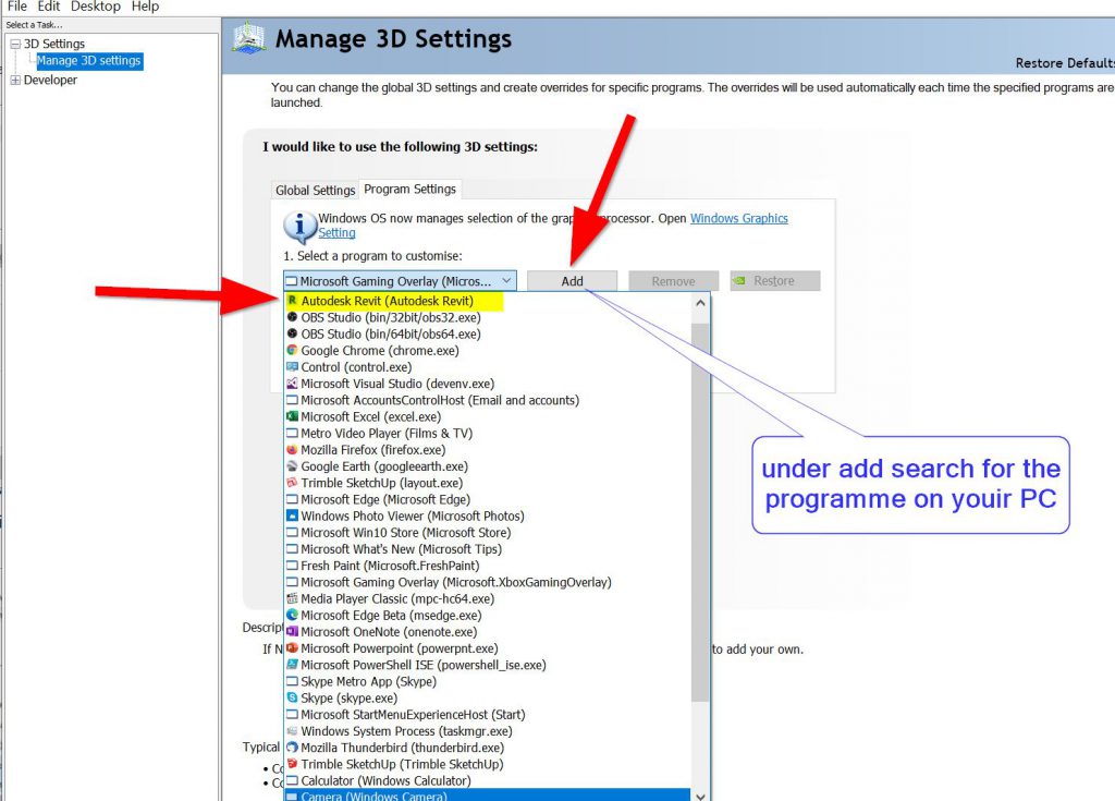 I noticed that the GPU was not popping up much for Revit so went in search of the GPU settings. The article pointed me to where I should go and I just added Revit to the list.