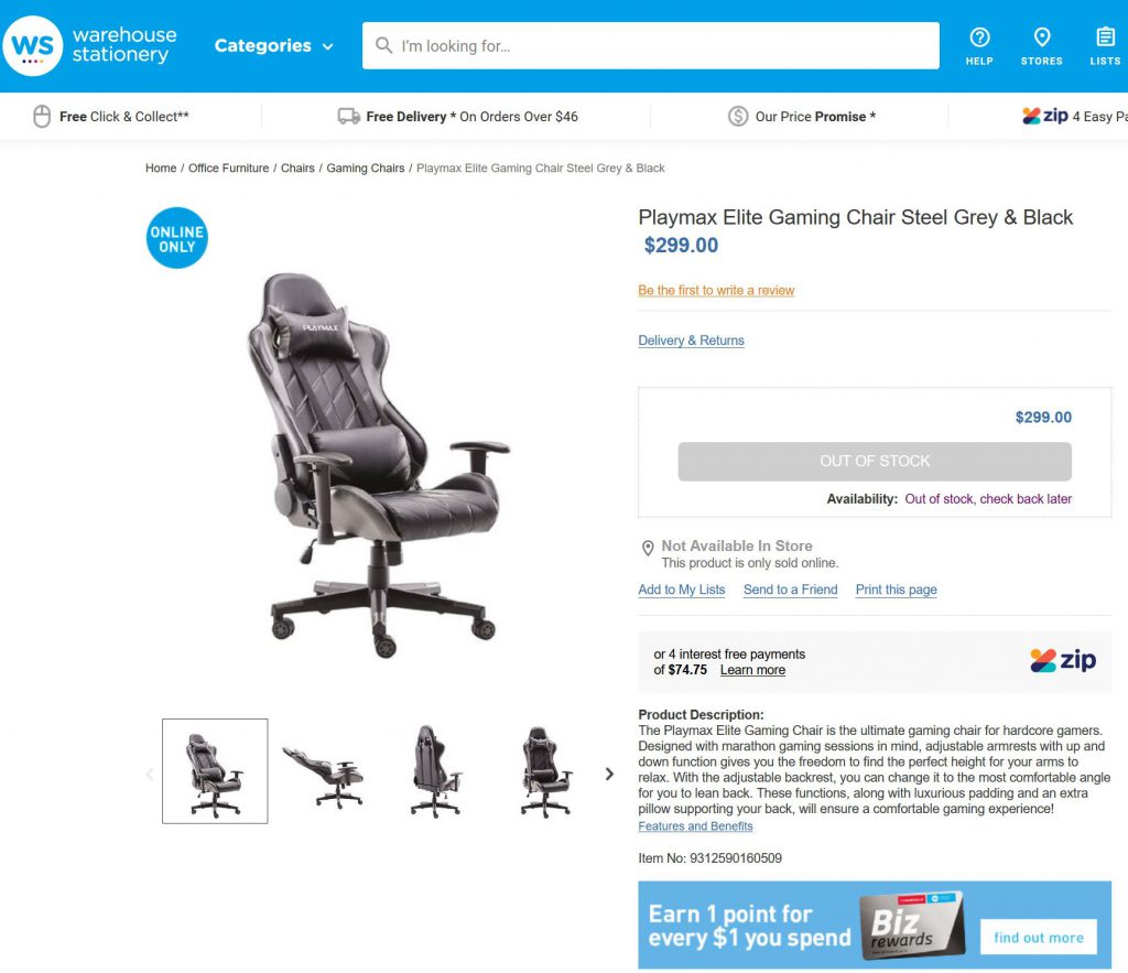 I looked online and found the same chair on 1-day sales at 170$ + 40$ delivery with 4-6 days delivery, it tilts back and has cushions. The 4-6 days for delivery ended up being 9 working days which annoyed me a bit as previously the eScooter took ages to come too.